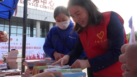 今年7月,河南省鶴壁市?h遭受特大暴雨襲擊,不少學(xué)校的圖書室被洪水淹沒,課外閱讀書籍緊缺。近日,江蘇東臺(tái)愛心志愿者們自發(fā)組織開展了“一本書、一份愛、共結(jié)鹽浚情”閱讀援助計(jì)劃活動(dòng),為受災(zāi)的孩子們募集課外閱讀圖書近萬本。