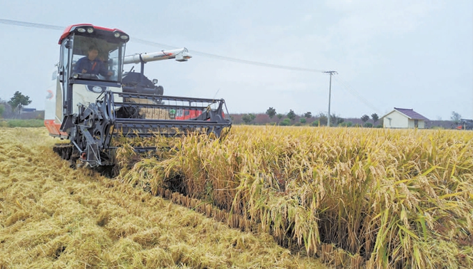 當(dāng)前,我區(qū)10.18萬畝水稻陸續(xù)成熟,開始收割。從農(nóng)業(yè)部門田間調(diào)研及種植戶反饋的情況來看,我區(qū)今年水稻平均畝產(chǎn)將達(dá)580公斤,市民很快就能吃到今年的新米了。圖為10月22日,臨江新區(qū)峰光農(nóng)機(jī)服務(wù)專業(yè)合作社的5000畝水稻喜迎豐收。