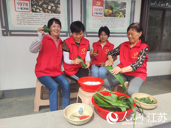 洋溪社區(qū)的老年人在包粽子。錢橋街道供圖
