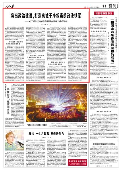 “我們堅持把政治建設(shè)擺在首要位置,特別是在第二批政法隊伍教育整頓中,結(jié)合黨史學(xué)習(xí)教育,充分發(fā)揮浙江‘三個地’(中國革命紅船起航地、改革開放先行地、習(xí)近平新時代中國特色社會主義思想重要萌發(fā)地)的特色優(yōu)勢,扎實開展政治學(xué)習(xí)教育!闭憬∥N、政法委書記王昌榮介紹,具體而言,一是扎實抓好對習(xí)近平總書記“七一”重要講話精神的學(xué)習(xí),二是扎實抓好深學(xué)篤行習(xí)近平法治思想,三是扎實抓好對習(xí)近平總書記關(guān)于政法工作重要指示批示精神的學(xué)習(xí)。