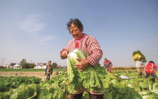 南通海安農(nóng)民加緊采收大白菜確保市場供應(yīng)