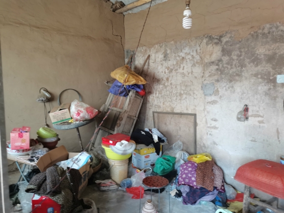 改造前,小宸的家,用家徒四壁來形容并不過分。一間依托舊墻體加高后搭建起的“鍋屋”(當(dāng)?shù)貙ζ康乃追Q),是小宸日常用來學(xué)習(xí)和睡覺的地方,墻體開裂,屋頂漏雨。屋里堆滿了雜物,除了一張舊木板床,和一張用磚支撐著一條腿的桌子外,再沒有一樣像樣的家具。