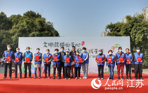 對“最美生活垃圾分類指導(dǎo)員”進(jìn)行表彰和頒獎。鼓樓城管局供圖