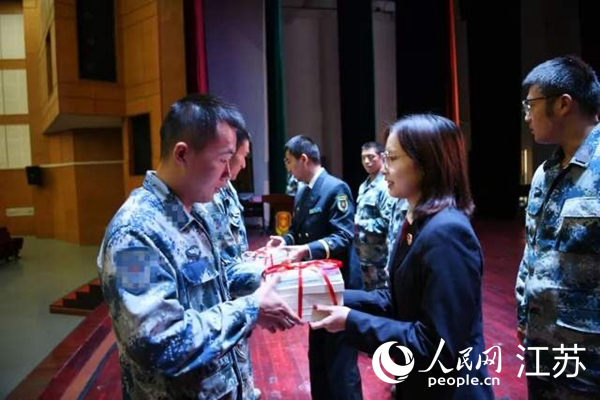 南京軍事檢察院、無錫市檢察院共同向部隊官兵們贈送學(xué)習(xí)資料。無錫市檢察院供圖