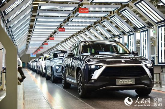 4月7日,蔚來汽車第10萬臺量產(chǎn)車在合肥下線。人民網(wǎng) 李希蒙攝