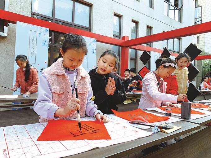 溧陽市溧城街道鄉(xiāng)村“復(fù)興少年宮”“書百福剪百孝”活動現(xiàn)場。 (資料圖片)