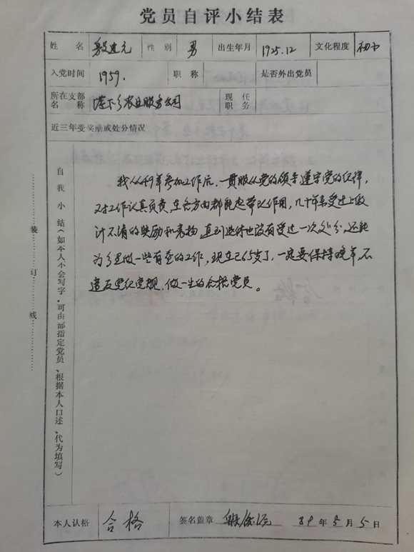 殷進(jìn)元老人的黨員自評 朱敏杰攝