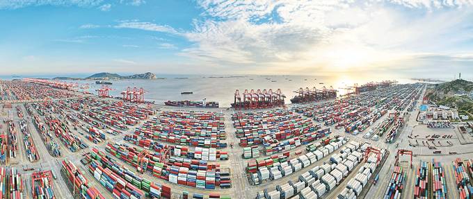俯瞰上海洋山港碼頭。 (新華社發(fā))