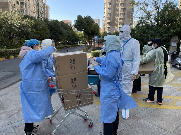 “每家每戶的需求不同,一定要看清便簽,特別是藥品和生鮮食材,一定要盡快配送到位”,“煙小草”志愿者身著藍(lán)色防護(hù)服,戴上防護(hù)面罩和口罩,有的穿梭于樓棟中,為居民運(yùn)送蔬菜、肉類、大米、面條等生活物資;“請(qǐng)戴好口罩,按次序排隊(duì),檢測(cè)完就趕緊回家”,有的堅(jiān)守核酸檢測(cè)防控一線,做好每棟每戶居民核酸檢測(cè)的信息采集、錄入工作;“李奶奶,上次的降壓藥吃完了嗎?家里還有多少食材?”有的加入樓棟業(yè)主群,摸底樓戶情況,對(duì)接居民們的各種需求……