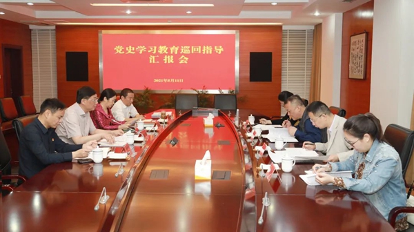 圖為市委第五巡回指導(dǎo)組聽(tīng)取市人民法院黨史學(xué)習(xí)教育情況匯報(bào)。靖江市委學(xué)教辦供圖