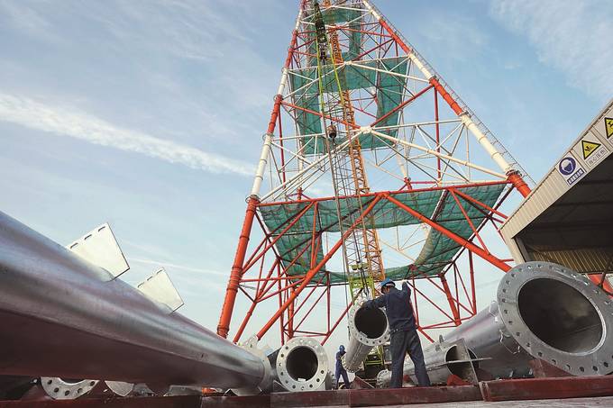 江蘇鳳城—梅里500千伏線路長江大跨越工程建設(shè)正穩(wěn)步推進(jìn),工程建成后將有效提高長三角能源電力一體化水平,降低長三角地區(qū)總體碳排放水平,助力長江兩岸經(jīng)濟社會發(fā)展。圖為日前工人在施工現(xiàn)場忙碌。 (新華社發(fā))