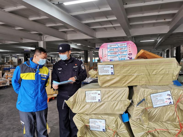 幸福街道派出所民警到物流企業(yè)宣傳。徐亞萍攝