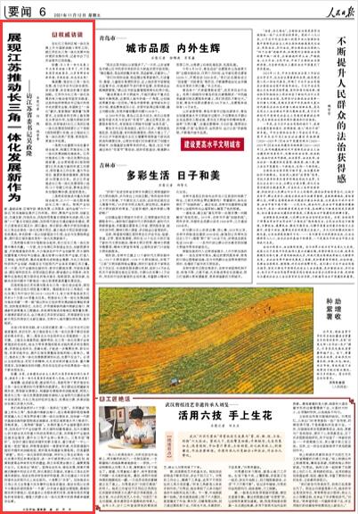 人民日報訪江蘇省委書記吳政。赫宫F(xiàn)江蘇推動長三角一體化發(fā)展新作為