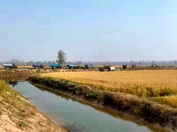 人民網(wǎng)徐州11月12日電 (閆峰)11月初,在徐州市銅山區(qū)房村鎮(zhèn)竇家村稻蝦養(yǎng)殖基地,成片的稻谷在陽光照耀下閃爍著金光,8臺(tái)聯(lián)合收割機(jī)往來穿梭加緊搶收。看著這一片豐收景象,村黨支部書記王強(qiáng)心里十分欣慰。