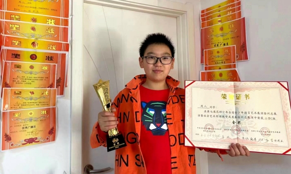 獲評(píng)沛縣2021年“新時(shí)代好少年”的陽(yáng)光男孩周人。胡平攝