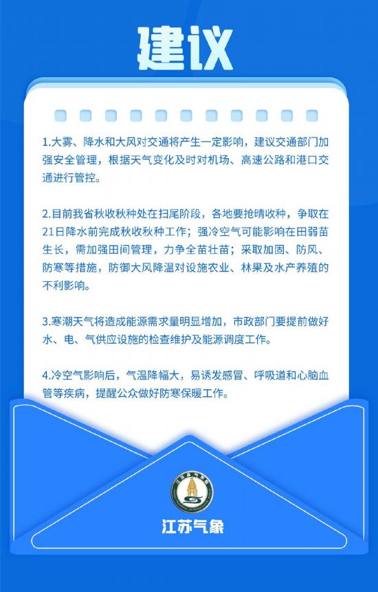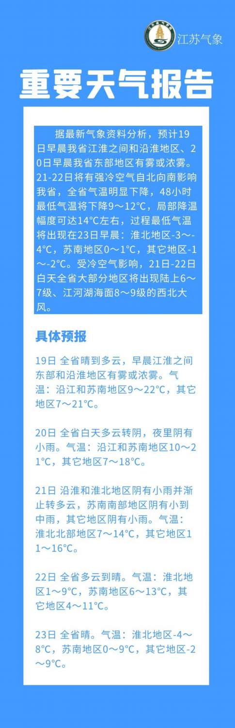 原標(biāo)題:大霧+寒潮,最高降溫14°C!江蘇氣象臺發(fā)布重要天氣報告