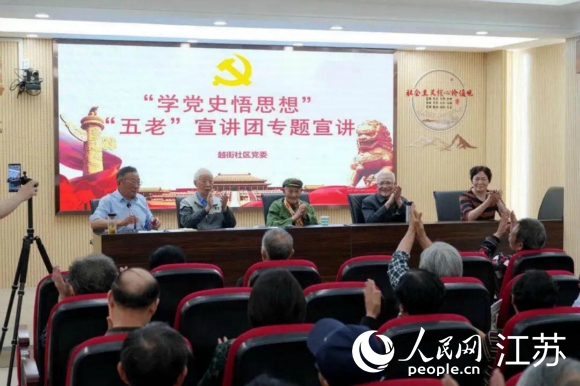 依托社區(qū)理論宣講陣地,給支部黨員講楊根思的故事;走進(jìn)校園,給孩子們講新四軍黃橋戰(zhàn)役;走進(jìn)社區(qū),給居民講述中國(guó)共產(chǎn)黨帶領(lǐng)中國(guó)人民團(tuán)結(jié)奮進(jìn)的故事……宣講會(huì)、報(bào)告會(huì)、沙龍,豐富多彩的活動(dòng)中,處處活躍著宣講團(tuán)的身影。截至目前“五老”志愿宣講團(tuán)共宣講50多場(chǎng)次,宣講團(tuán)團(tuán)長(zhǎng)桂炎說(shuō):“我們堅(jiān)持用身邊人講身邊事,挖掘本地紅色資源、歷史人物、紅色故事,從百年黨史中汲取前進(jìn)的力量,這是我們每一位老黨員的初心!