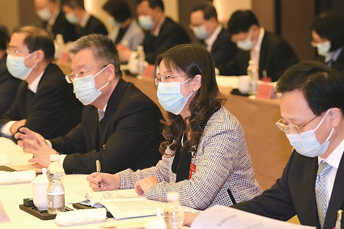 11月24日下午,出席省第十四次黨代會的各代表團(tuán)審議黨代會報(bào)告。圖為省級機(jī)關(guān)代表團(tuán)審議黨代會報(bào)告。 本報(bào)記者 吳勝 朱江 萬程鵬 攝