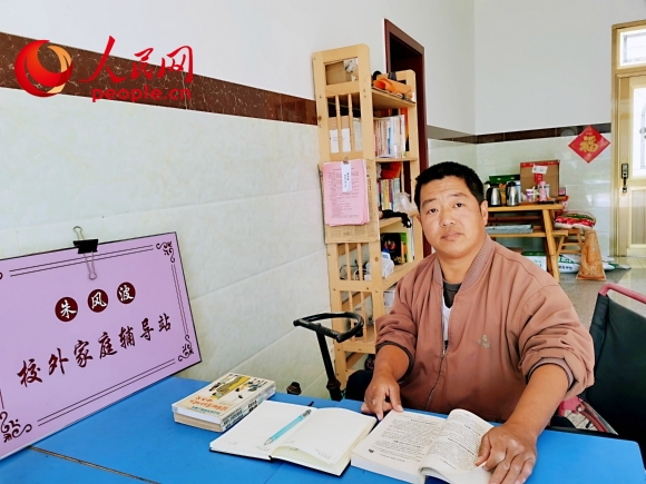 “我沒有什么大道理,都是小孩子聽得懂的話!敝祜L(fēng)波愛看書,這些也是他的知識(shí)之源。在他家里,一個(gè)簡(jiǎn)易書柜里有文學(xué)作品、科普書籍、思想理論書籍和教輔資料!昂⒆觽儗懲昙彝プ鳂I(yè)后,我會(huì)給他們講一些故事,讓他們從小故事中明白做人的道理!