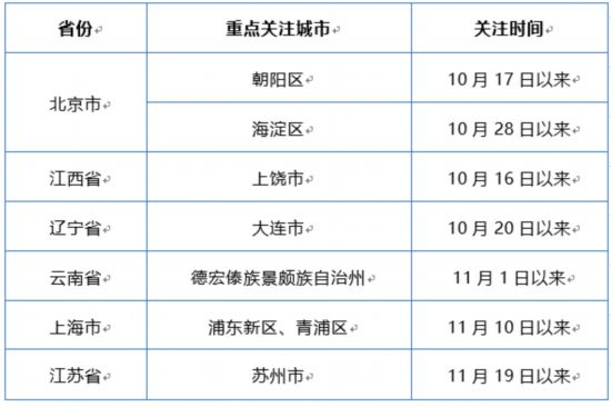 中高風(fēng)險(xiǎn)地區(qū)或有感染者報(bào)告的城市: