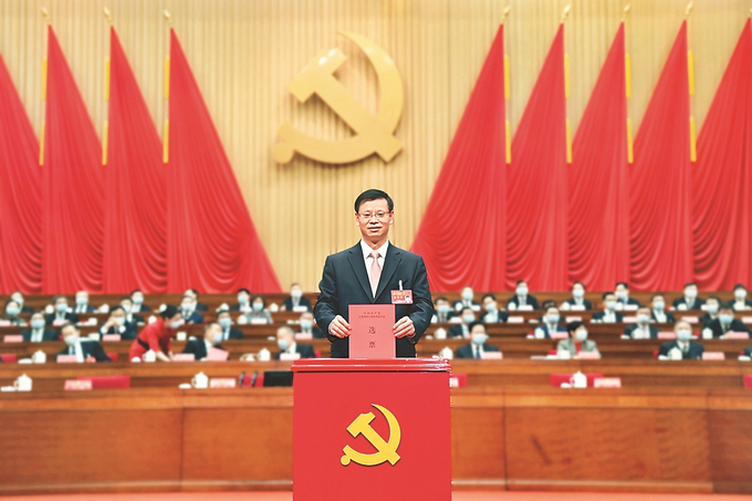 圖為吳政隆同志投票選舉中共江蘇省第十四屆委員會(huì)委員。 本報(bào)記者 吳勝 朱江 萬(wàn)程鵬 攝