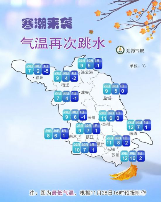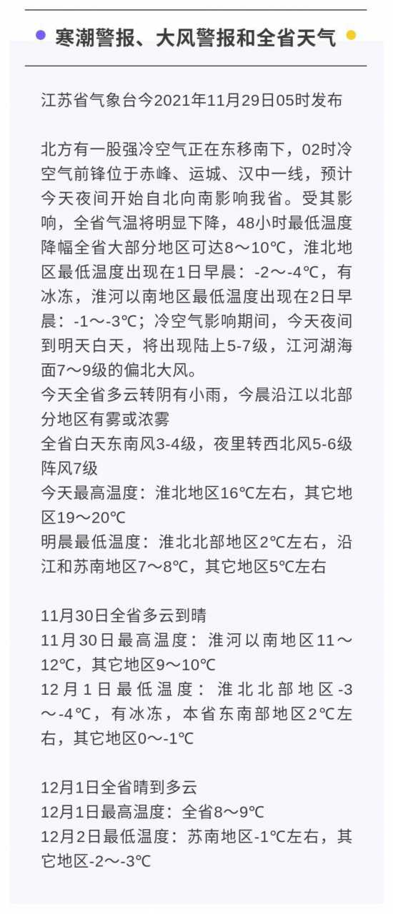 原標(biāo)題:寒潮大風(fēng)雙預(yù)警!江蘇48小時(shí)最低氣溫將下降8-10℃
