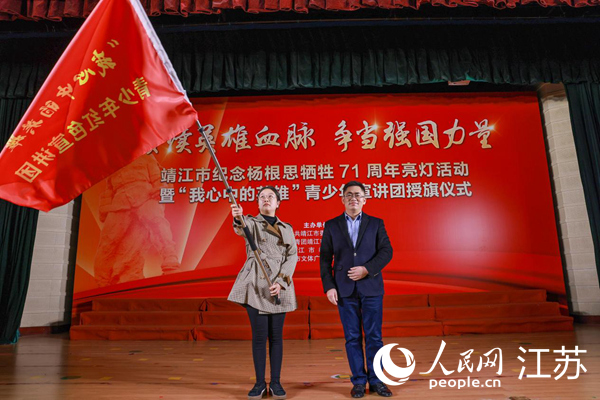 圖為“我心中的英雄”青少年紅色宣講團授旗儀式。靖江市委宣傳部供圖