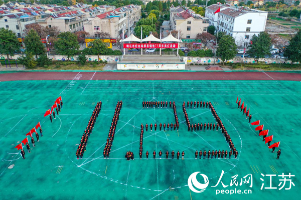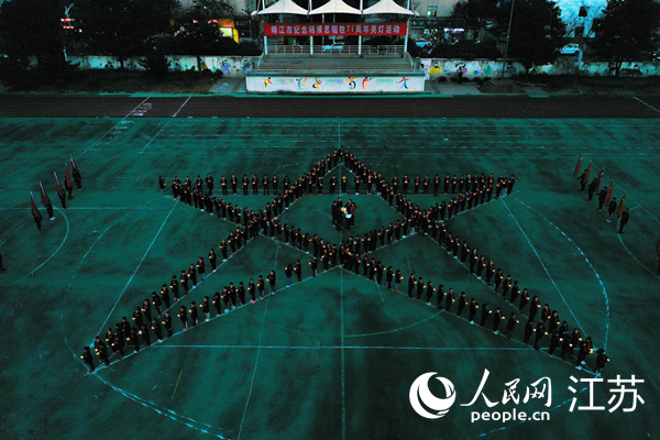 少先隊員集體獻唱《中國少年先鋒隊隊歌》后,還來到操場用亮燈儀式追懷英雄楊根思。他們手捧電子蠟燭擺出了“71”、“1129”以及五角星的造型,表達敬意,點亮心中的敬仰之光。靖江市外國語學(xué)校少先隊輔導(dǎo)員史佳潔說:“通過開展這樣的活動,傳頌楊根思烈士的英雄事跡,激勵廣大少先隊員以英雄為榜樣,讓英雄的革命主義精神代代相傳!
