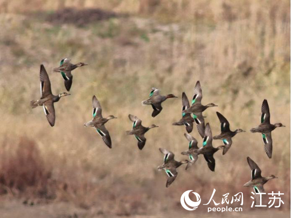 馬洲島發(fā)現(xiàn)150種鳥類。圖為綠翅鴨和花臉鴨。靖江市委宣傳部供圖