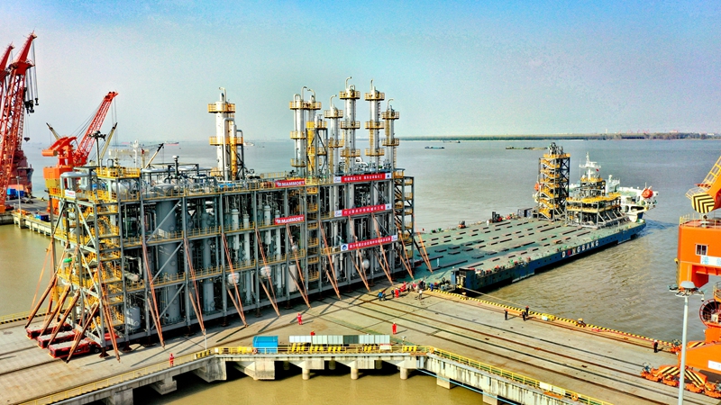 近日,“東方巨人5號”甲板駁船在張家港海事局海巡“06809”維護下,裝載三組化工裝置模塊安全駛離港新重裝碼頭,發(fā)往“一帶一路”沿線國家阿聯(lián)酋。今年1至11月,張家港海事局克服疫情影響、惡劣天氣等不利因素,精準服務“一帶一路”建設項目重大件裝運153艘次,累計產(chǎn)值高達120億元人民幣,為轄區(qū)企業(yè)做大做強和社會經(jīng)濟發(fā)展注入新動能。(陳超)