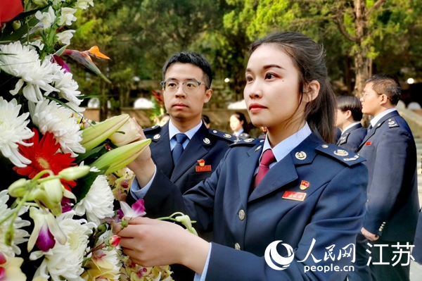 無錫稅務(wù)新人為烈士敬獻(xiàn)鮮花 無錫市稅務(wù)局供圖