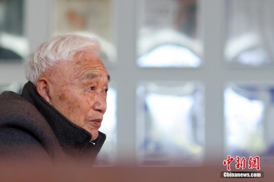 南京大屠殺幸存者阮定東說:“我們要牢記這段歷史,讓自己強大起來,才能更好地維護世界和平。” 泱波 攝