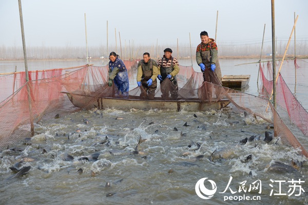 張福河村臨近的于圩村,在過去同樣是個傳統(tǒng)小漁村,但對于帶動村民致富,村集體仍把漁業(yè)當(dāng)作“法寶”。12月初,在西順河鎮(zhèn)于圩村水產(chǎn)基地,當(dāng)?shù)卮迕駛兠χ鸩丁⒎謷、投放由?zhèn)里專項資金采購的魚苗,“在政府的支持下,我們一幫脫貧戶承包了這個1000多畝的基地,主要養(yǎng)殖四大家魚,收入不錯!别B(yǎng)殖基地負責(zé)人表示。