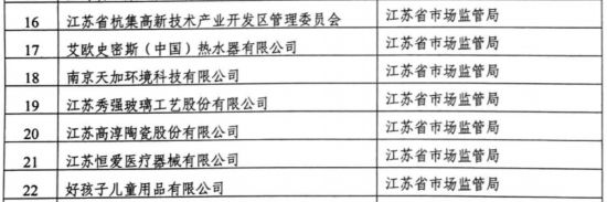 此次發(fā)布的第二批國家級消費品標準化試點項目,共計76項,江蘇省有7個項目獲選,具體入選的企業(yè)為江蘇省杭集高新技術(shù)產(chǎn)業(yè)開發(fā)區(qū)管理委員會、艾歐史密斯(中國)熱水器有限公司、南京天加環(huán)境科技有限公司、江蘇秀強玻璃工藝股份有限公司、江蘇高淳陶瓷股份有限公司、江蘇恒愛醫(yī)療器械有限公司和好孩子兒童用品有限公司。