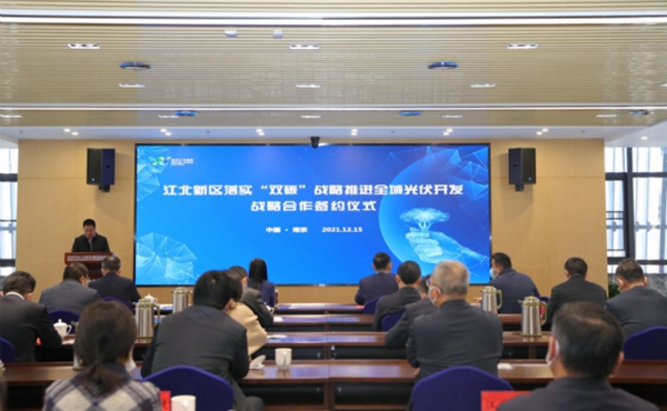 12月15日上午,南京江北新區(qū)舉行落實(shí)“雙碳”戰(zhàn)略推進(jìn)全域光伏開發(fā)合作簽約儀式,分別與國網(wǎng)南京供電公司、江蘇蘇美達(dá)能源控股有限公司簽署合作協(xié)議,深入實(shí)施可持續(xù)發(fā)展戰(zhàn)略,加快推進(jìn)全域光伏開發(fā)建設(shè),著力打造“雙碳”示范學(xué)校等多樣化應(yīng)用場景。