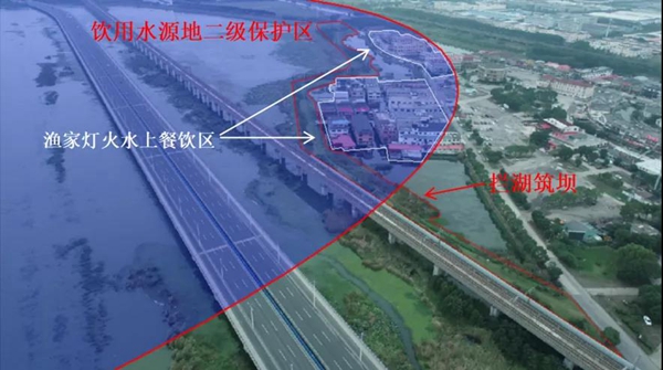 通報(bào)稱(chēng),陽(yáng)澄湖大閘蟹素有“蟹中之王”美稱(chēng),陽(yáng)澄湖更是因此馳名中外,“銀帆破浪舟歸晚、蟒蟹出艙客至繁”,每到蟹季,大量游客紛沓而至,催生了陽(yáng)澄湖周邊“農(nóng)家樂(lè)”“水上蟹坊”餐飲業(yè)無(wú)序發(fā)展。2019年11月,央視《經(jīng)濟(jì)半小時(shí)》欄目連續(xù)兩天對(duì)蘇州市相城區(qū)的陽(yáng)澄湖周邊農(nóng)家樂(lè)餐飲污染問(wèn)題進(jìn)行曝光,引起高度關(guān)注。但蘇州市未能正確認(rèn)識(shí)餐飲無(wú)序發(fā)展對(duì)陽(yáng)澄湖生態(tài)環(huán)境的破壞,僅僅對(duì)曝光的“美人腿”和蓮花島上的農(nóng)家樂(lè)開(kāi)展了清理整頓,昆山市對(duì)大量打“擦邊球”直接建在水面上的“水上蟹坊”餐飲污染問(wèn)題放之任之,甚至對(duì)飲用水源地二級(jí)保護(hù)區(qū)內(nèi)的違法違規(guī)水上餐飲表面整改。昆山“漁家燈火”餐飲區(qū)在2002年后,相繼出現(xiàn)“水上蟹坊”形式的水上餐飲,部分水上餐飲違規(guī)建設(shè)在湖體水面。陽(yáng)澄湖飲用水源地保護(hù)區(qū)劃分后,地方政府沒(méi)有按要求對(duì)飲用水水源保護(hù)區(qū)內(nèi)農(nóng)家樂(lè)、賓館酒店、餐飲娛樂(lè)等項(xiàng)目進(jìn)行拆除或關(guān)閉,卻在陽(yáng)澄湖內(nèi)“攔湖筑壩”試圖掩蓋,造成水上餐飲不在飲用水源地二級(jí)保護(hù)區(qū)內(nèi)的“假象”。督察發(fā)現(xiàn),2016年以來(lái),“漁家燈火”餐飲區(qū)在飲用水源地二級(jí)保護(hù)區(qū)內(nèi)持續(xù)違法改建水上餐飲項(xiàng)目,目前在二級(jí)保護(hù)區(qū)內(nèi)仍存在約79家違法違規(guī)“水上蟹坊”餐飲店,形成伸進(jìn)保護(hù)區(qū)的“奇特觸角”。