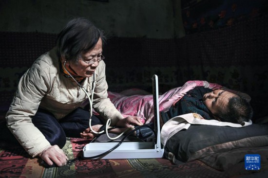 1月18日,在陜西省榆林市佳縣店鎮(zhèn)賀家溝村農(nóng)家窯洞里,路生梅跪坐在土坑上為癱瘓不起的村民喬愛芬義診。1968年,24歲的北京姑娘路生梅從北京第二醫(yī)學(xué)院(現(xiàn)首都醫(yī)科大學(xué))畢業(yè),只身來到千里之外的佳縣從醫(yī)。1999年,路生梅退休后,堅持留在佳縣為群眾義診。
