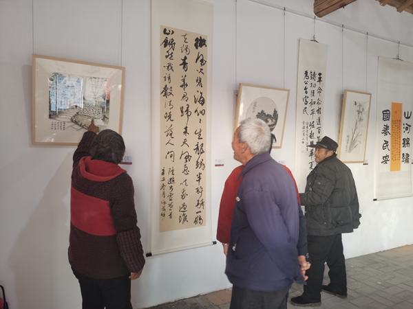 人民網(wǎng)南京12月19日電 沒有背景墻、沒有話筒、沒有鮮花,暖暖的冬日下,藝術(shù)家們和當(dāng)?shù)卮迕褡谖萸暗拈L條凳上,聽村民的生活點滴,談自己的創(chuàng)作感想……12月17日,“藝術(shù)點亮鄉(xiāng)村——‘學(xué)黨史·走基層’走進(jìn)趙湖文藝采風(fēng)創(chuàng)作展”在南京浦口區(qū)舉行,村民們看著自己祖祖輩輩生活的村莊出現(xiàn)在畫里和書法作品里,感到十分新奇和自豪。