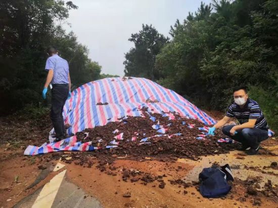 公安機(jī)關(guān)介入調(diào)查后,在附近多地發(fā)現(xiàn)有相同外觀刺激性氣味的棕色固廢,最終根據(jù)查找沿線監(jiān)控,鎖定了可疑車(chē)輛和當(dāng)事人黃某。