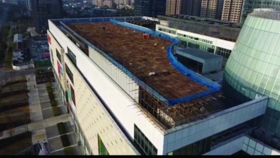 隨后,記者聯(lián)系了華采天地一名工作人員,并來到了華采天地頂樓的施工現(xiàn)場。有施工人員告訴記者,這里新建面積有七八千平米。并且施工一直在趕進(jìn)度,施工方希望能在2022年元旦后不久竣工。