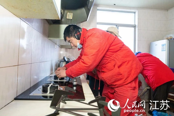 圖為燃?xì)夤竟ぷ魅藛T上門為居民安裝天然氣和燃?xì)庠罹。陳祥攝