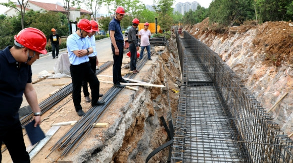 今年6月,泉山森林海小區(qū)的居民們注意到,小區(qū)西墻外的山坡上來了一支施工隊伍。銅山區(qū)排水管護中心主任楊子軍告訴居民,區(qū)委區(qū)政府批準了一個方案,就是實施龍腰山西側(cè)截洪溝改建工程,將山洪攔腰截斷并引入楚河,同時在小區(qū)雨水線路北側(cè)鋪設(shè)污水管,沿玫瑰路向東接入華山路污水管,最終形成一套高水高排、低水低排的洪水排水體系,徹底解決泉山森林海小區(qū)及周邊地區(qū)山洪排水不暢、居民時常遭水患侵擾的現(xiàn)實難題。