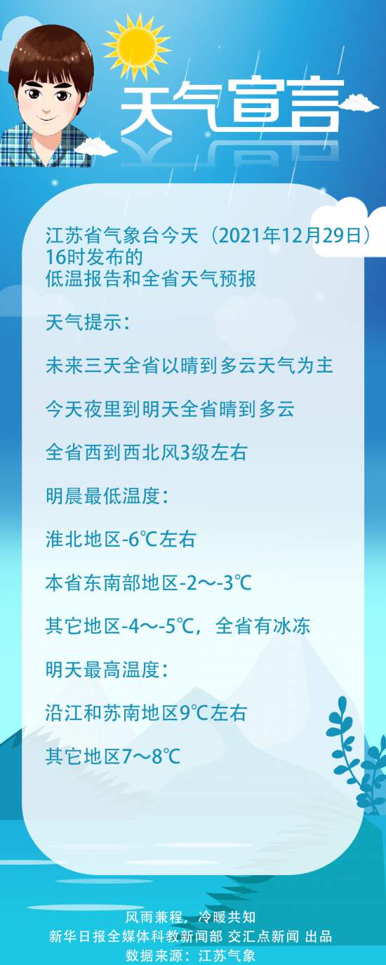 江蘇氣溫緩慢回升中 元旦假期晴到多云