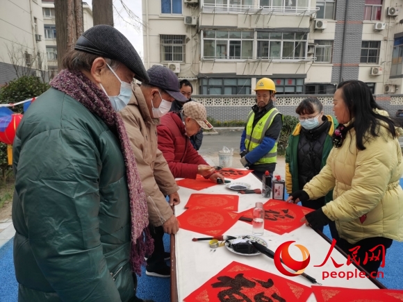 書法愛好者為易家橋貳號院小區(qū)居民送“!薄H嗣窬W(wǎng)記者 王繼亮攝