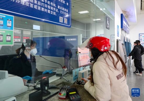 1月3日,旅客在滬昆高鐵貴州銅仁南站售票廳購(gòu)買車票。