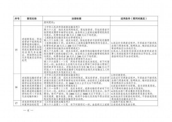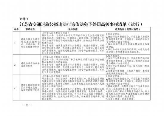 附件:《江蘇省交通運輸輕微違法行為依法免予處罰高頻事項清單(試行)》