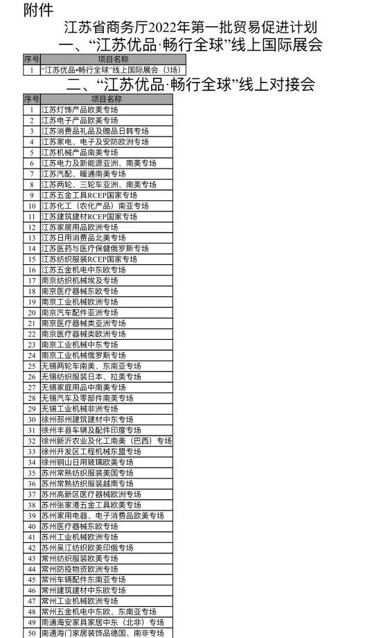 附件:江蘇省商務(wù)廳2022年第一批貿(mào)易促進(jìn)計(jì)劃