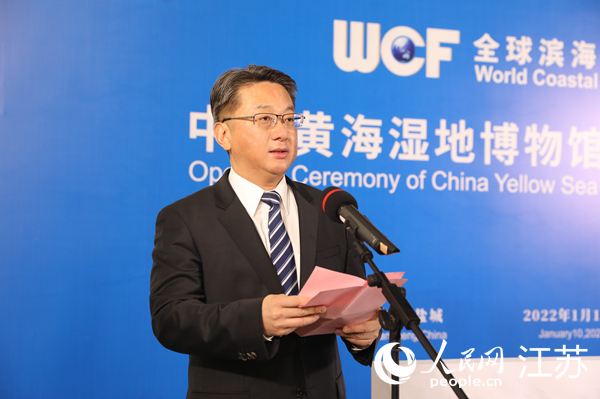周斌在致辭時(shí)說(shuō),鹽城地處中國(guó)黃海之濱、江蘇沿海中部,有著太平洋西岸和亞洲大陸邊緣面積最大、生態(tài)保護(hù)最好的海岸型濕地。這里不僅成為全球候鳥(niǎo)遷飛線路上的重要節(jié)點(diǎn),也讓鹽城成為充滿生機(jī)和希望的一片熱土。隨著中國(guó)·鹽城黃(渤)海候鳥(niǎo)棲息地(第一期)成功列入《世界遺產(chǎn)名錄》,更加堅(jiān)定了我們保護(hù)自然生態(tài)的信心和決心。中國(guó)黃海濕地博物館是生態(tài)文明成果的展示館,是深化濕地國(guó)際科普科研和交流合作的科技館,是全方位呈現(xiàn)黃海濕地自然人文風(fēng)貌的主題館。“我們將嚴(yán)格履行《世界遺產(chǎn)公約》,充分發(fā)揮博物館引領(lǐng)作用,探索一條濕地保護(hù)與開(kāi)發(fā)互動(dòng)并進(jìn)的發(fā)展之路。希望大家一如既往關(guān)心支持鹽城尤其是黃海濕地的可持續(xù)發(fā)展,攜手共創(chuàng)更加美好的明天!