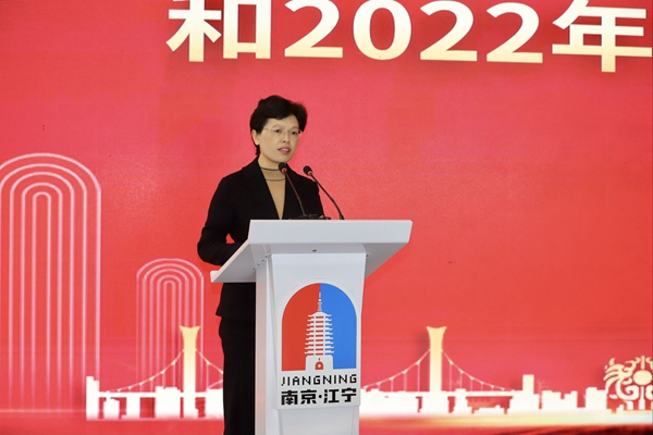 南京市江寧區(qū)委常委、常務(wù)副區(qū)長繆秀梅介紹未來五年發(fā)展規(guī)劃和2022年重點工作安排。江寧區(qū)委宣傳部供圖