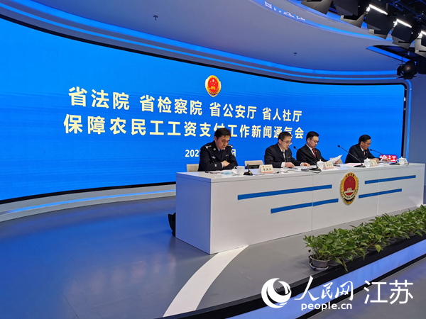 人民網(wǎng)南京1月14日電 (馬曉波)春節(jié)將至,如何保障農(nóng)民工工資支付再成熱點(diǎn)話題。1月14日,江蘇省法院、省檢察院、省公安廳、省人社廳等四部門聯(lián)合召開保障農(nóng)民工工資支付工作新聞通氣會(huì),發(fā)布了一批典型案例,介紹各部門圍繞保障農(nóng)民工合法權(quán)益相關(guān)舉措。